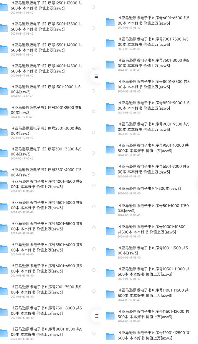 包含了16700册精选经典书籍,涵盖了文学、历史、哲学、科学等多个领域。无论你是想重温经典名著,还是探索新的知识,这个合集都能提供丰富的阅读资源。每本书都是经过精心挑选,确保高质量的阅读体验。亚马逊镇店之宝合集(5000册)、亚马逊原版电子书合集(2500册)等,已分类附目录
